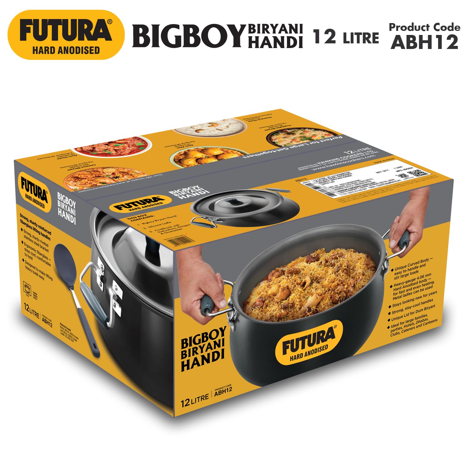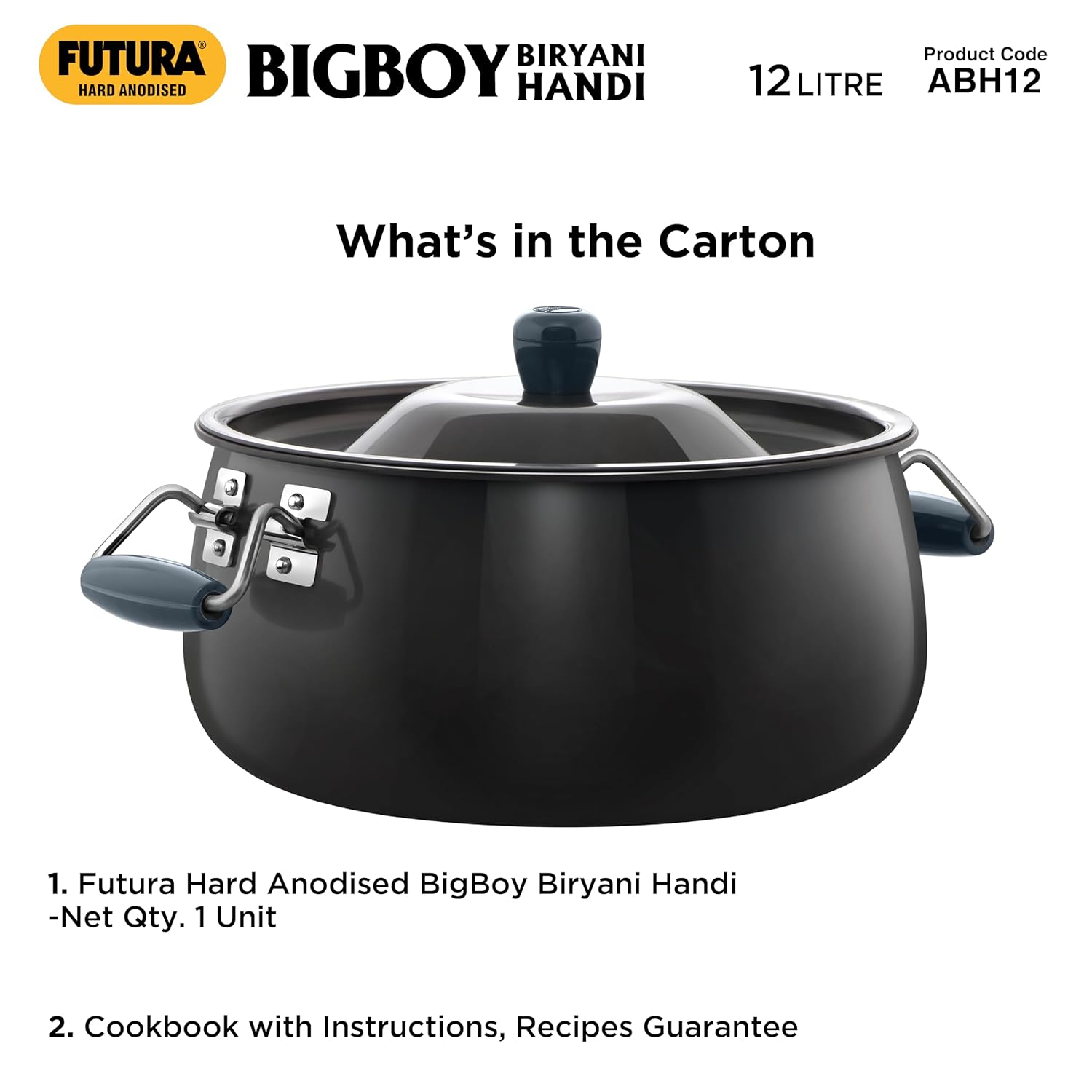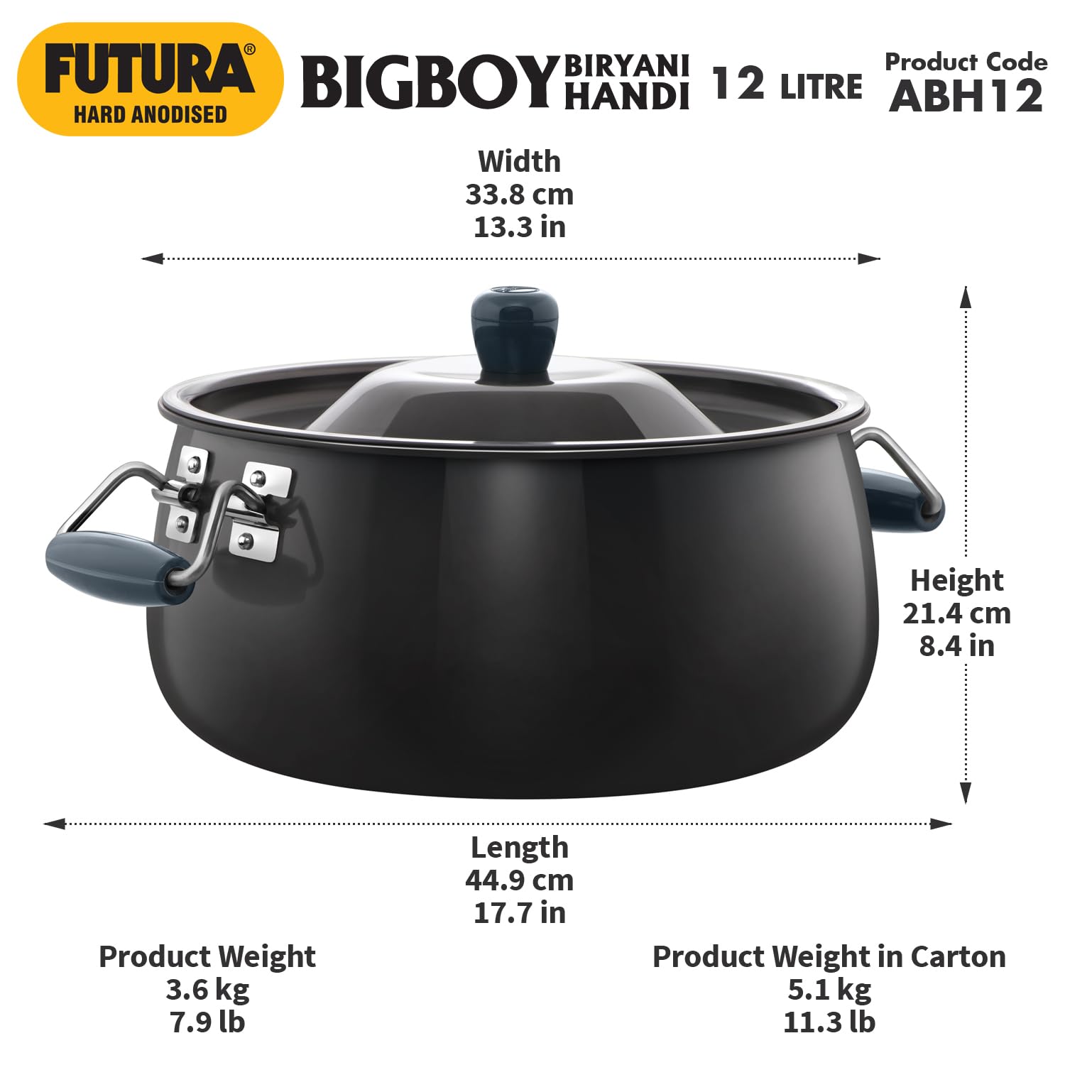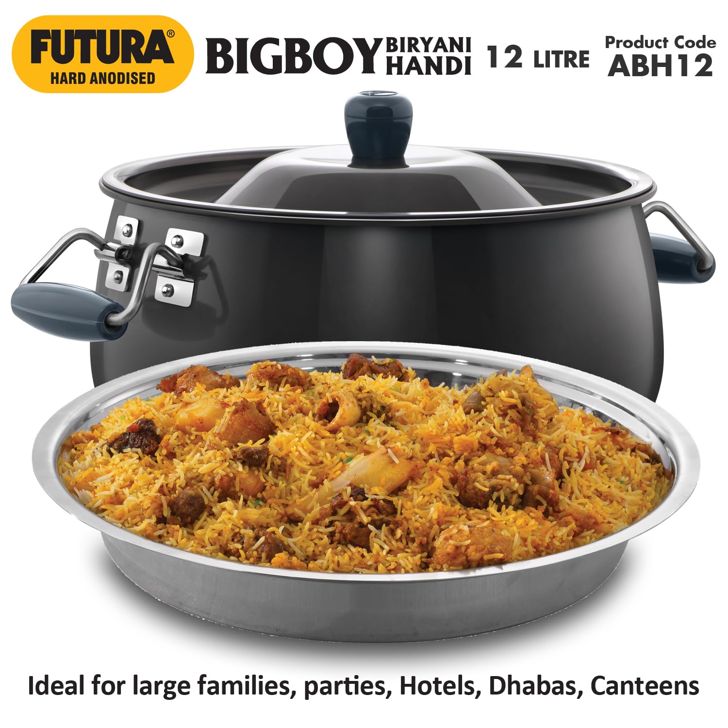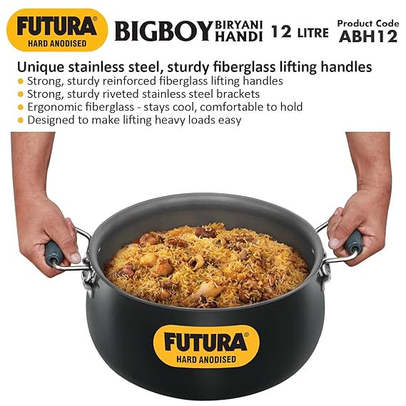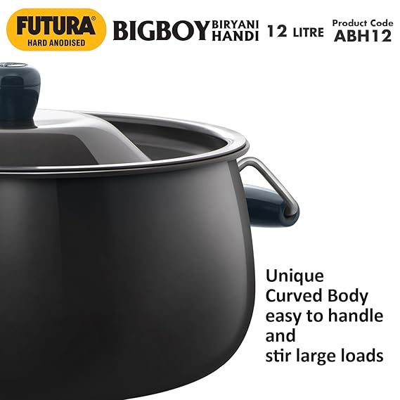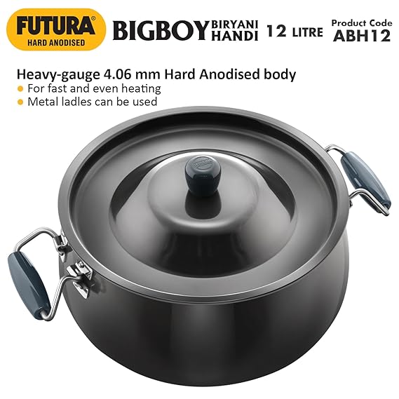 Hawkins Aluminium Futura Bigboy Biryani Handi, Polished Hard Anodised Pot with Hard Anodised Lid