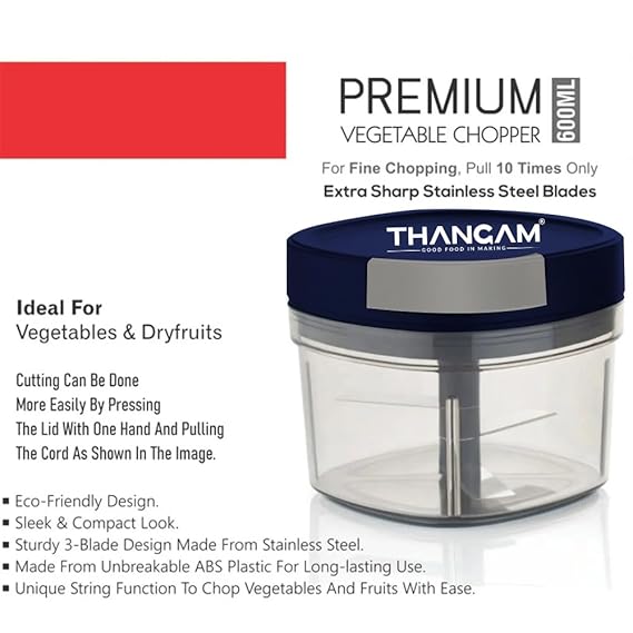 Thangam Multipurpose Plastic Manual Hand Vegetable Chopper for Kitchen Use Vegetables & Fruits Cutting Slicer – 600ml