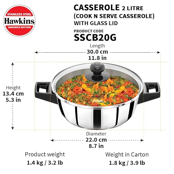 Be the first to review “Hawkins 2 Litre Cook n Serve Casserole, Stainless Steel Saucepan with Glass Lid, Induction Pan, Sauce Pan for Cooking and Serving” Cancel reply