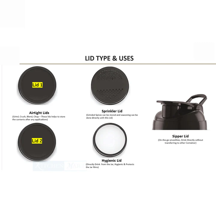 2 BPA-Free Jars Included – 500ml grinding jar and 300ml juicer jar with leak-proof lids for versatile blending needs