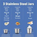*Includes: 1 Mixer grinder, 1 1.5 Litre big jar, 1 1. Litre middle jar and 1 .4 Litre chutney jar with small bottle