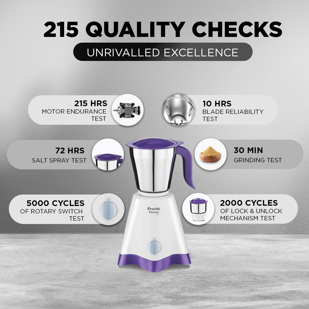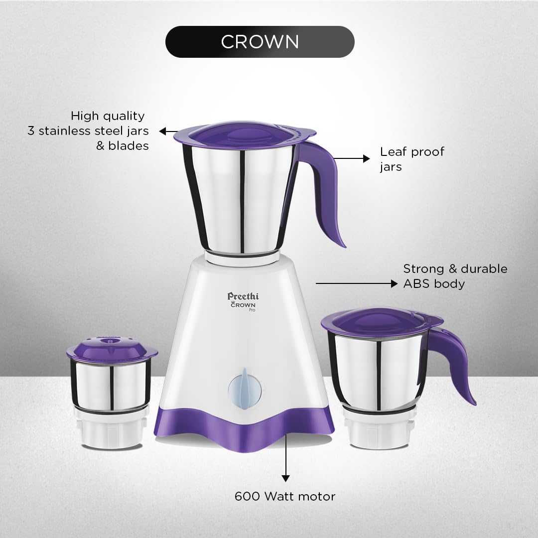 Preethi Crown Pro Mixer Grinder for Kitchen |600 Watt