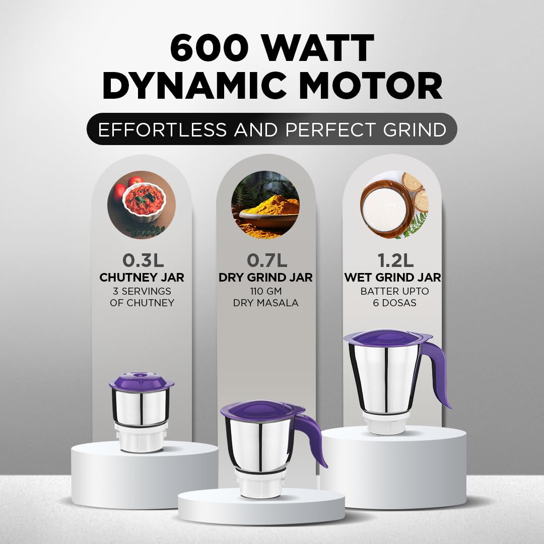 *Powerful 600W Motor – This Powerful 600W motor gives efficient mixing and grinding to your ingredients and saves your expenditure on electricity simultaneously.