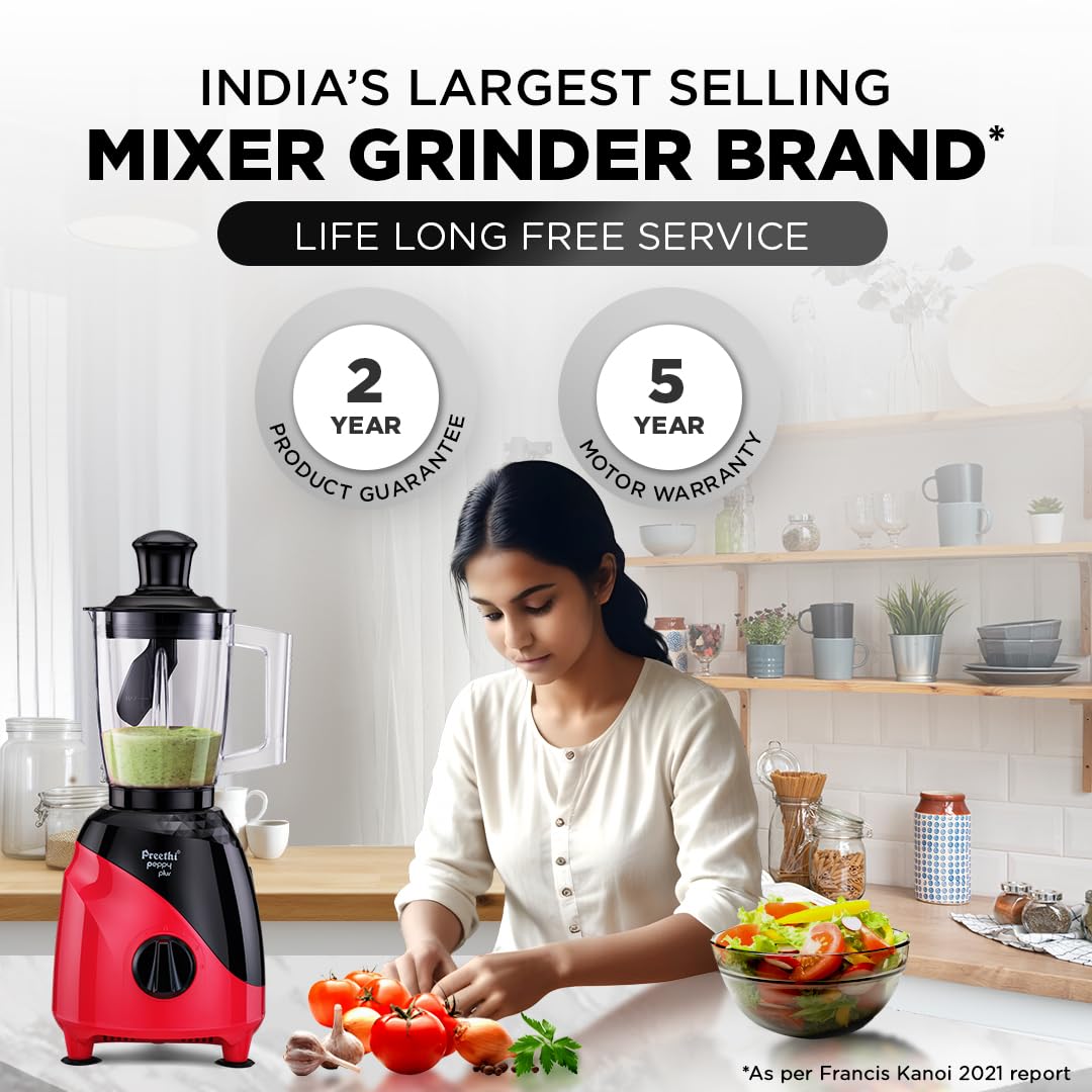 *India’s No 1 Mixer-Grinder Brand(as per Francis Kanoi) ; Performance Features: This Preethi mixer grinder has a powerful motor that ensures robust operations