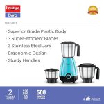 Prestige 500 Watts DIVA Mixer Grinder with 3 stainless Steel Jars|
