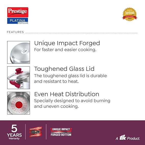 Prestige Platina Popular Stainless Steel Gas and Induction Compatible Casserole